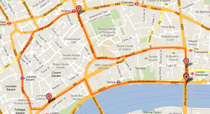 Campus Route – The area around LSE is pretty nice. St. Pauls Cathedral is just east a few blocks while Tottenham Court is to the west. Below is one possible route, but there are many options.